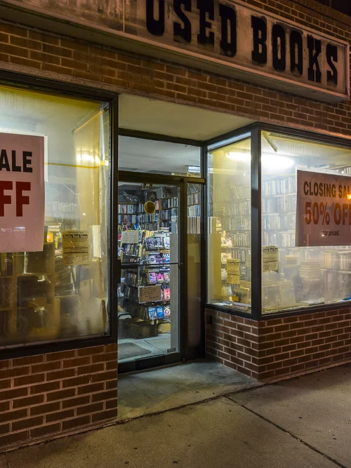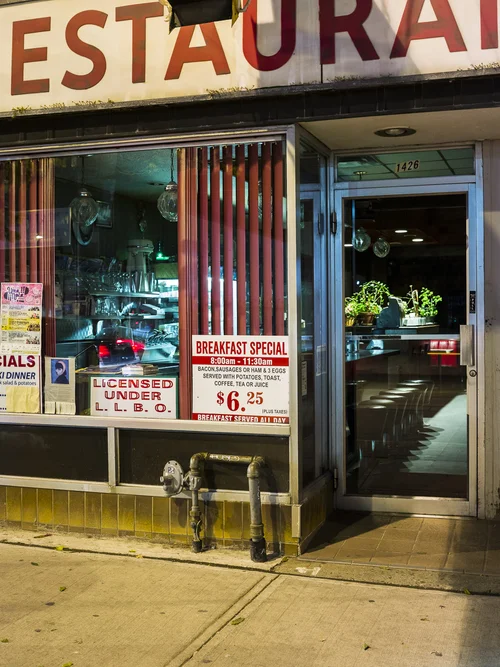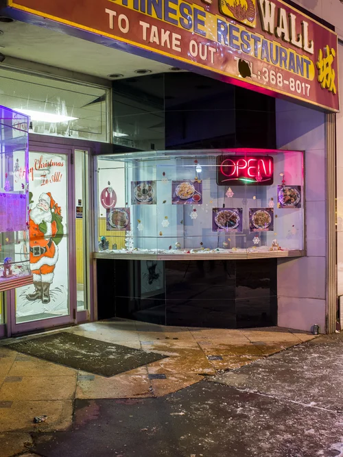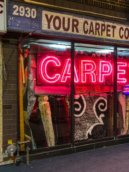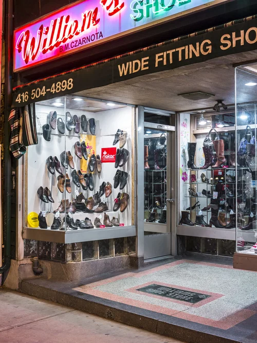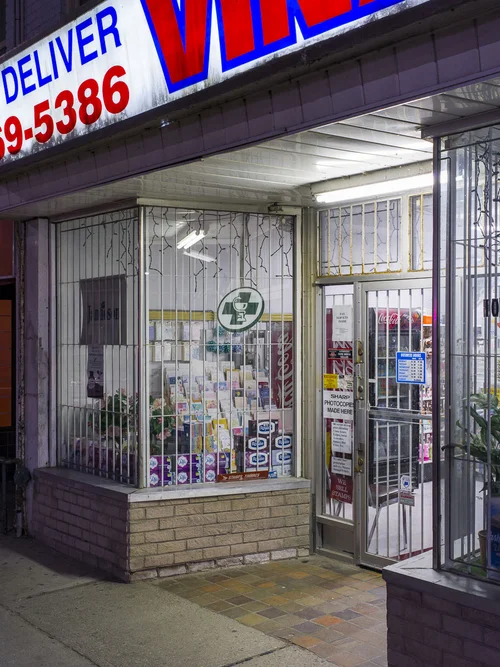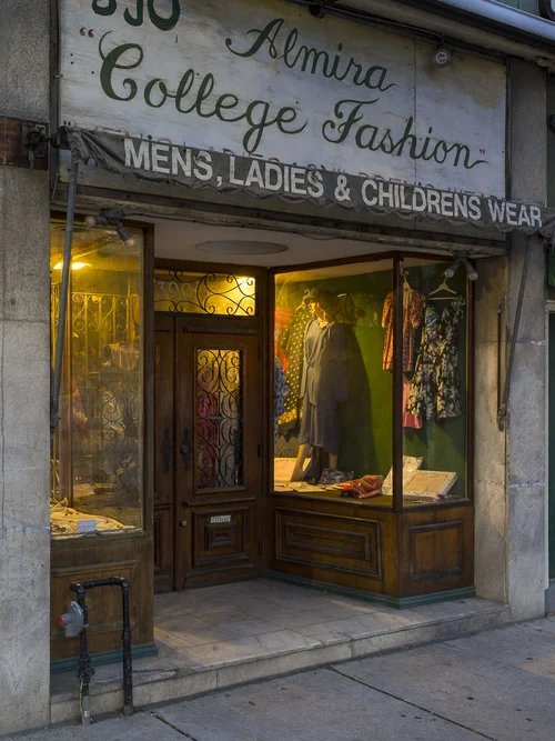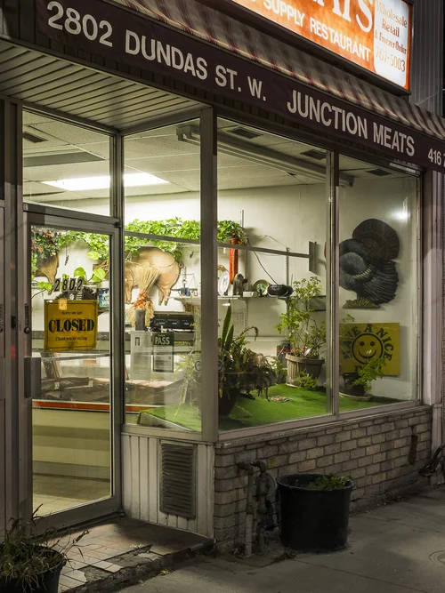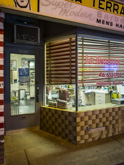 This series documents Toronto storefronts photographed at night, when the glow from within reveals the traces of daily life otherwise hidden behind glass. The darkness outside becomes a frame, focusing attention on interiors where merchandise, furniture, and signage speak of long histories and changing neighbourhoods.
